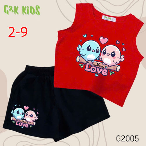 A458621 - Bộ quần đùi áo sát nách bé gái chất thun coton 4c in 2 chú chim LOVE_Size 2-9