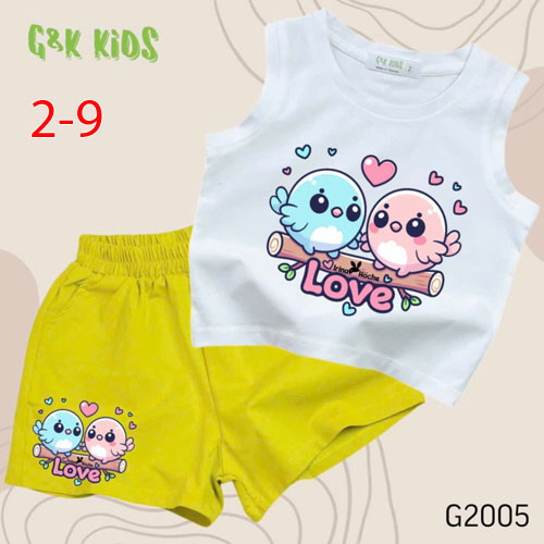 A458622 - Bộ quần đùi áo sát nách bé gái chất thun coton 4c in 2 chú chim LOVE_Size 2-9