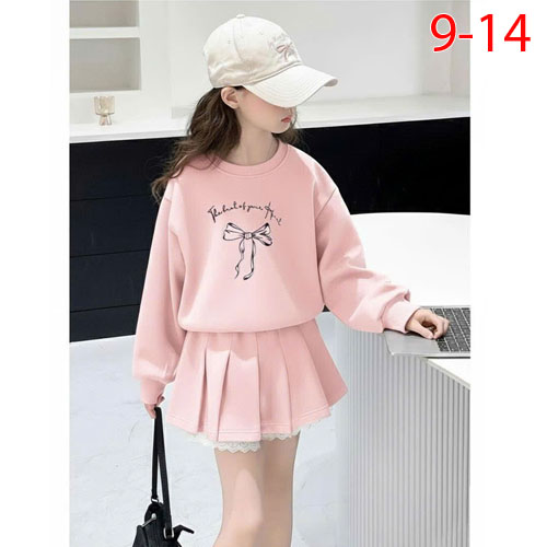 A460442 - Nexxi Win Win set áo dài tay form rộng in nơ mix chân váy xếp ly kèm quần viền ren lai chấ
