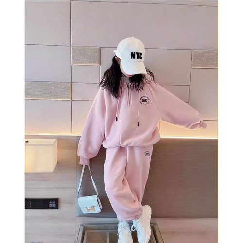 A467691 - (10/11)Nexxi Win Win set nỉ da cá Unisex áo hoodie dây kéo có nón quần dài bo lai in logo_