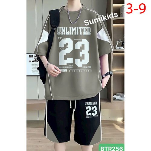A467701 - (7/11)Bộ thun năng động cho bé trai thun cotton 4c tay may phối vải kẹp lé in số 23_Size 3