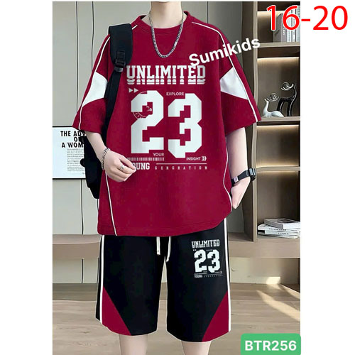 A467715 - (7/11)Bộ thun năng động cho bé trai thun cotton 4c tay may phối vải kẹp lé in số 23_Size 1