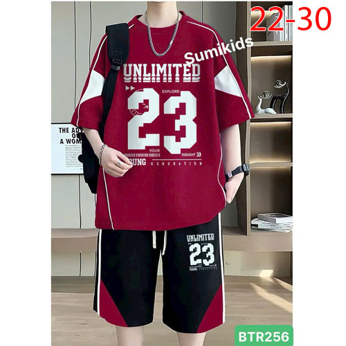 A467723 - (7/11)Bộ thun năng động cho bé trai thun cotton 4c tay may phối vải kẹp lé in số 23_Size 2