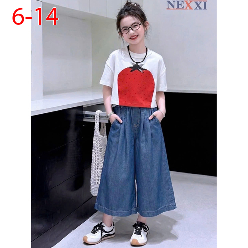 A504801 - Nexxi quần jean lửng mẹ con diện đôi lưng thun, xếp ly tạo điểm nhấn_Size 6-14