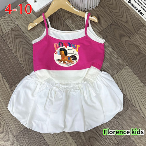 A505889 - Set bé gái áo 2 dây thun cotton in con ngựa chân váy bí kèm chip trong_Size 4-10
