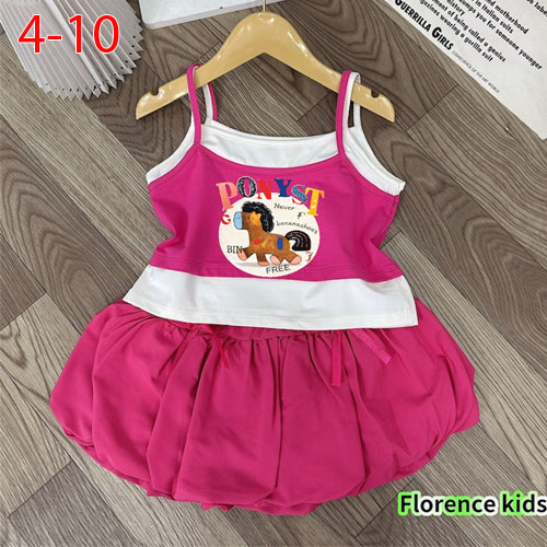 A505990 - Set bé gái áo 2 dây thun cotton in con ngựa chân váy bí kèm chip trong_Size 4-10