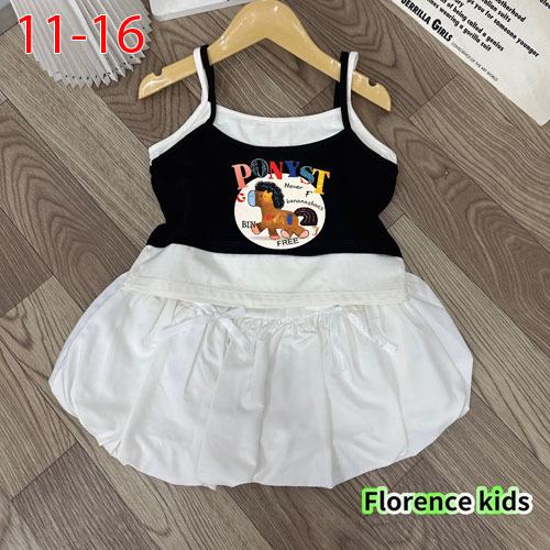 A505996 - Set bé gái áo 2 dây thun cotton in con ngựa chân váy bí kèm chip trong_Size 11-16