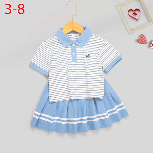 A508310 - Nexxi set váy siêu xinh áo cổ bẻ chất thun borip sọc co giãn 4C in Kitty chân váy xòe xếp