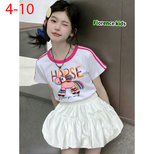 A508370 - Set váy dập ly ren cực xinh cho bé áo thun cotton in Kitty con ngựa chân váy bí kèm chip_S