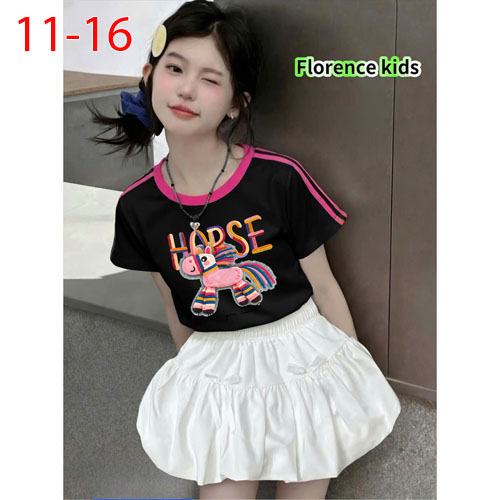 A508377 - Set váy dập ly ren cực xinh cho bé áo thun cotton in Kitty con ngựa chân váy bí kèm chip_S