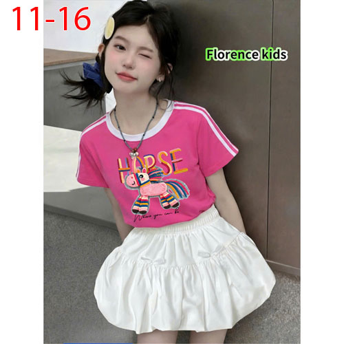 A508381 - Set váy dập ly ren cực xinh cho bé áo thun cotton in Kitty con ngựa chân váy bí kèm chip_S
