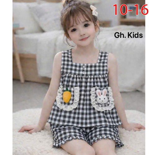 A509079 - (29/4)Sét xinh, rung rinh tim bé chất vải caro coton nhập_Size 10-16