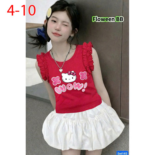 A509084 - Set váy bí cực xinh cho bé áo chất thun coton 4c in Kitty chân váy bí kèm chip trong_Size