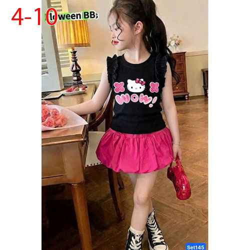 A509088 - Set váy bí cực xinh cho bé áo chất thun coton 4c in Kitty chân váy bí kèm chip trong_Size