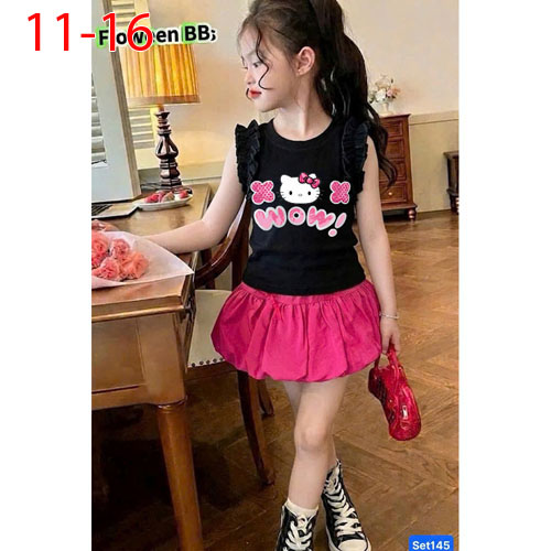 A509089 - Set váy bí cực xinh cho bé áo chất thun coton 4c in Kitty chân váy bí kèm chip trong_Size