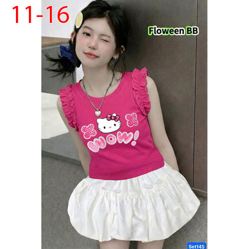 A509090 - Set váy bí cực xinh cho bé áo chất thun coton 4c in Kitty chân váy bí kèm chip trong_Size