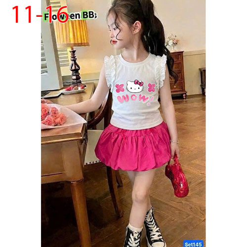 A509092 - Set váy bí cực xinh cho bé áo chất thun coton 4c in Kitty chân váy bí kèm chip trong_Size