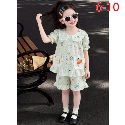 A509107 - Set chất vải đũi vân mây cổ áo phối ren xinh sắn hình in sắc nét tạo điểm nhấn_Size 6-10