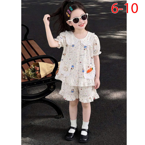 A509109 - Set chất vải đũi vân mây cổ áo phối ren xinh sắn hình in sắc nét tạo điểm nhấn_Size 6-10