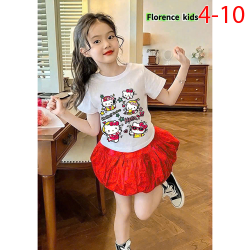A509311 - Set váy dập ly ren cực xinh cho bé áo thun cotton 4c in Kitty chân váy bí kèm chip trong_S
