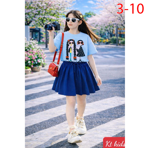 A509382 - Sét váy xinh cho bé yêu thun cotton 4c in chữ in cô bé chân váy xếp ly nhẹ nhàng_Size 3-10