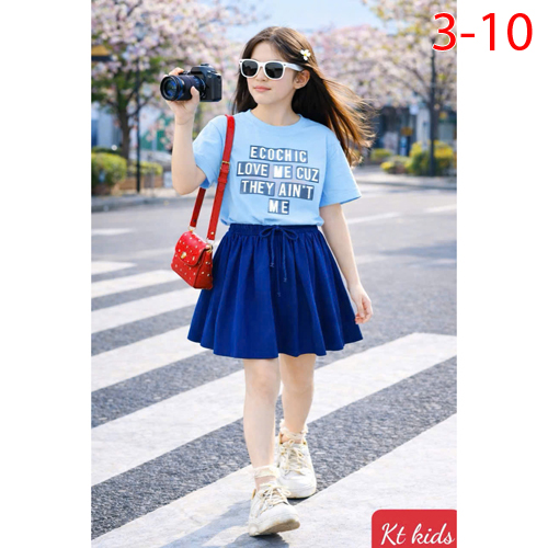 A509383 - Sét váy xinh cho bé yêu thun cotton 4c in chữ in cô bé chân váy xếp ly nhẹ nhàng_Size 3-10