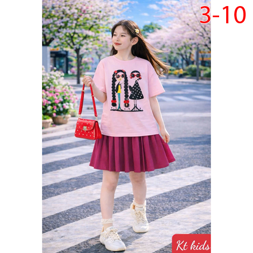 A509385 - Sét váy xinh cho bé yêu thun cotton 4c in chữ in cô bé chân váy xếp ly nhẹ nhàng_Size 3-10