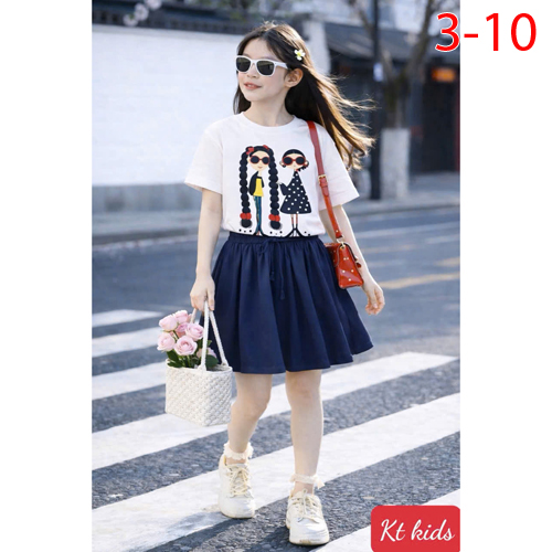 A509389 - Sét váy xinh cho bé yêu thun cotton 4c in chữ in cô bé chân váy xếp ly nhẹ nhàng_Size 3-10