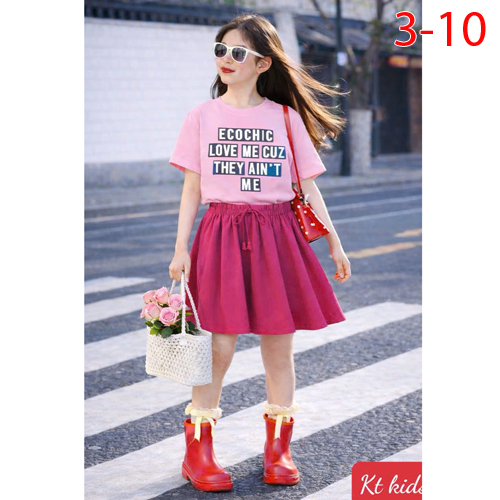A509394 - Sét váy xinh cho bé yêu thun cotton 4c in chữ in cô bé chân váy xếp ly nhẹ nhàng_Size 3-10