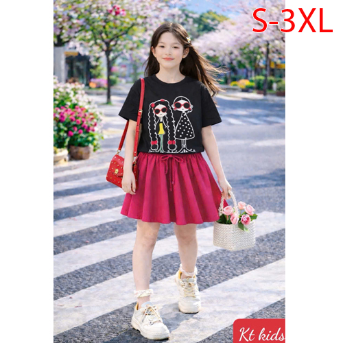 A509409 - Sét váy xinh cho bé yêu thun cotton 4c in chữ in cô bé chân váy xếp ly nhẹ nhàng_Size S-3X