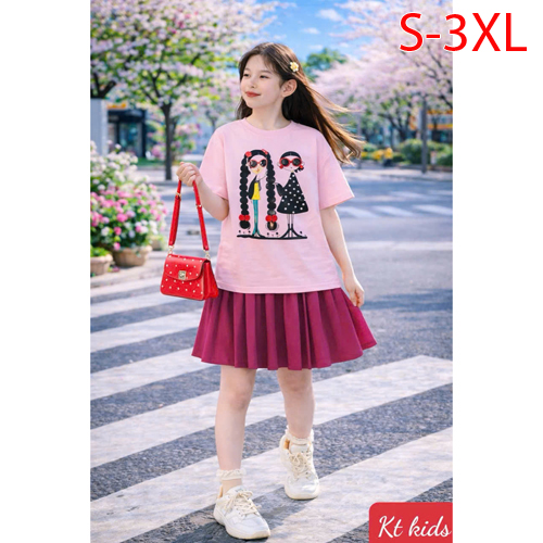 A509410 - Sét váy xinh cho bé yêu thun cotton 4c in chữ in cô bé chân váy xếp ly nhẹ nhàng_Size S-3X