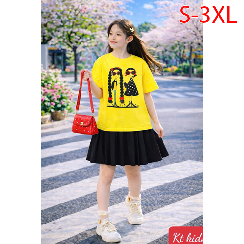 A509411 - Sét váy xinh cho bé yêu thun cotton 4c in chữ in cô bé chân váy xếp ly nhẹ nhàng_Size S-3X