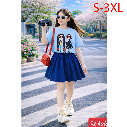 A509420 - Sét váy xinh cho bé yêu thun cotton 4c in chữ in cô bé chân váy xếp ly nhẹ nhàng_Size S-3X