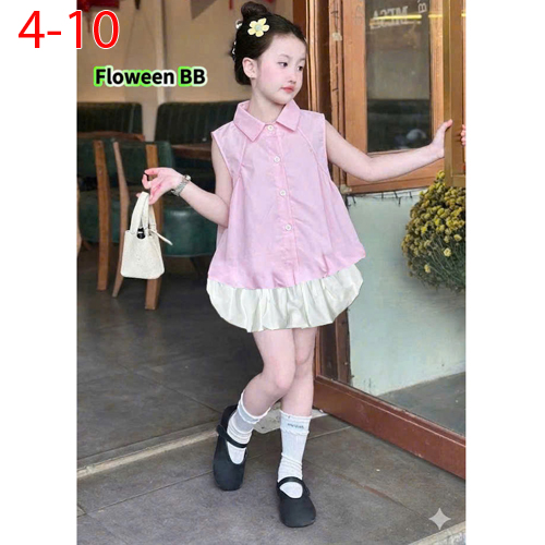 A509459 - Set váy dập ly ren cực xinh cho bé áo sơmi lai phồng chất kate mềm mại chân váy bí kèm chi