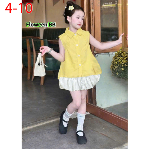A509460 - Set váy dập ly ren cực xinh cho bé áo sơmi lai phồng chất kate mềm mại chân váy bí kèm chi
