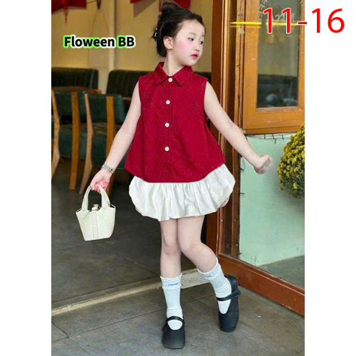 A509466 - Set váy dập ly ren cực xinh cho bé áo sơmi lai phồng chất kate mềm mại chân váy bí kèm chi