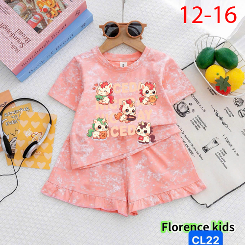 A509483 - Bộ đùi loang lai bèo dễ thương cho bé gái thun cotton 4c in nhiều con ngựa_Size 12-16