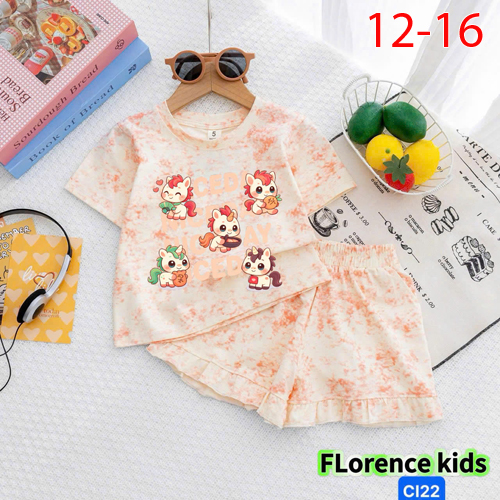A509484 - Bộ đùi loang lai bèo dễ thương cho bé gái thun cotton 4c in nhiều con ngựa_Size 12-16
