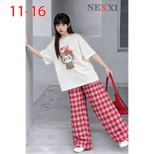 A509510 - (8/5)Nexxi set mẹ con cực trendy áo form rộng chất cotton co giãn 4C in mèo quần dài ống s