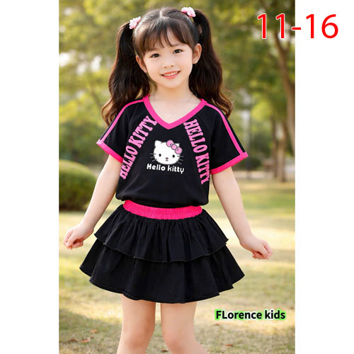 A509515 - Set váy dập ly ren cực xinh cho bé thun coton 4 chiều in Kitty chân váy 2 tầng kèm chip tr