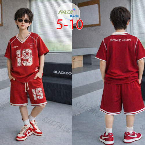 A509519 - Bộ hip hop bé trai áo may ngắn tay cổ tim ép số 19 thể thao thun cotton co giãn 4c_Size 5-