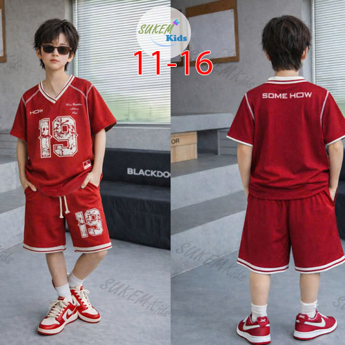 A509522 - Bộ hip hop bé trai áo may ngắn tay cổ tim ép số 19 thể thao thun cotton co giãn 4c_Size 11