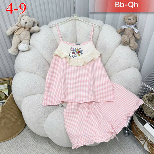 A509579 - (1/5)Bộ bé gái vải caro coton mềm mại áo 2 dây có tăng đơ tăng giảm in Kitty_Size 4-9