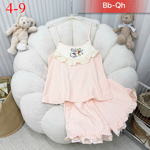 A509580 - (1/5)Bộ bé gái vải caro coton mềm mại áo 2 dây có tăng đơ tăng giảm in Kitty_Size 4-9