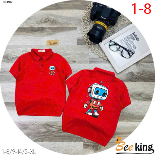 A509608 - Áo bé trai cổ trụ Robot chất liệu cotton 4c_Size 1-8