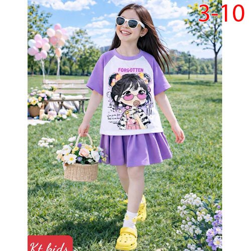 A509867 - Set váy xinh cho bé yêu thun cotton co giãn 4c in Kitty in cô bé chân váy xếp ly_Size 3-10
