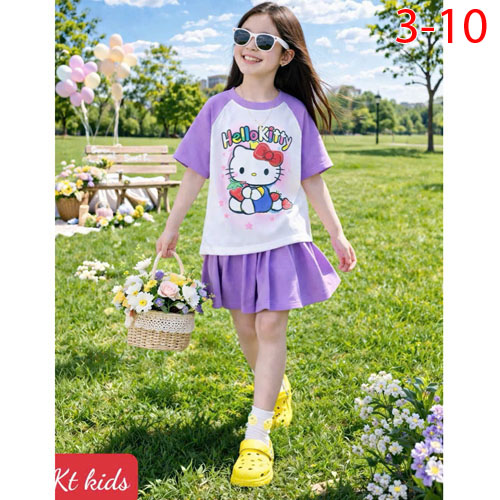 A509869 - Set váy xinh cho bé yêu thun cotton co giãn 4c in Kitty in cô bé chân váy xếp ly_Size 3-10