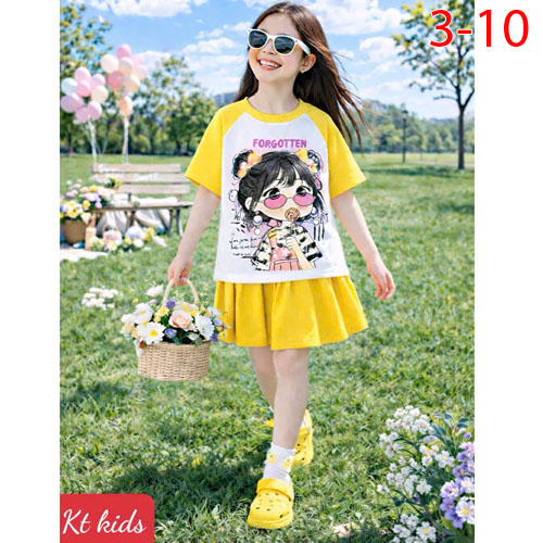 A509873 - Set váy xinh cho bé yêu thun cotton co giãn 4c in Kitty in cô bé chân váy xếp ly_Size 3-10