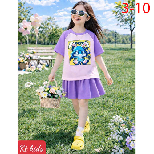 A509877 - Set váy xinh cho bé yêu thun cotton co giãn 4c in Kitty in cô bé chân váy xếp ly_Size 3-10