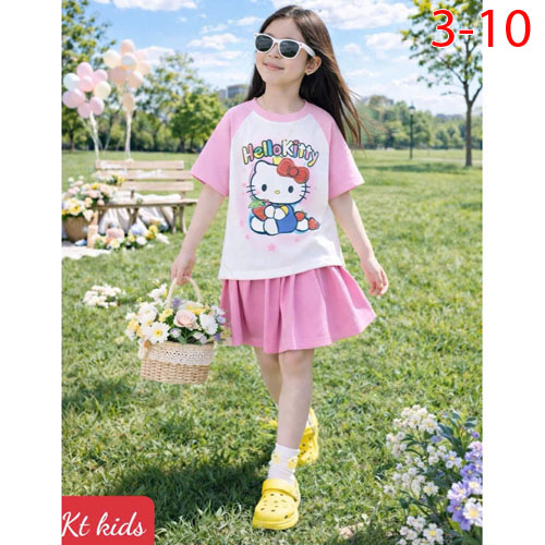 A509883 - Set váy xinh cho bé yêu thun cotton co giãn 4c in Kitty in cô bé chân váy xếp ly_Size 3-10